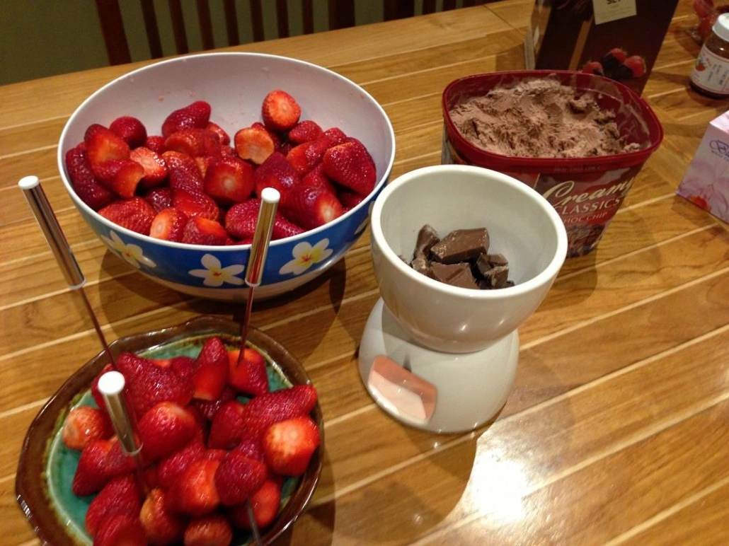 Dessert Strawberries dipped in chocolate sauce